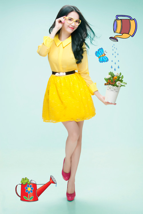 Làn da trắng nõn nà của Ngọc Trinh càng thêm phát huy với gam màu vàng