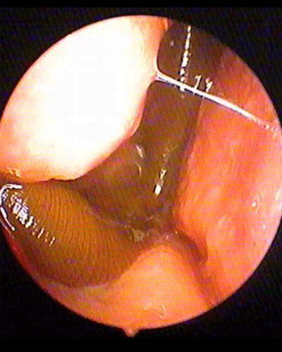 Hình ảnh con vắt sống trong hốc mũi qua máy nội soi.